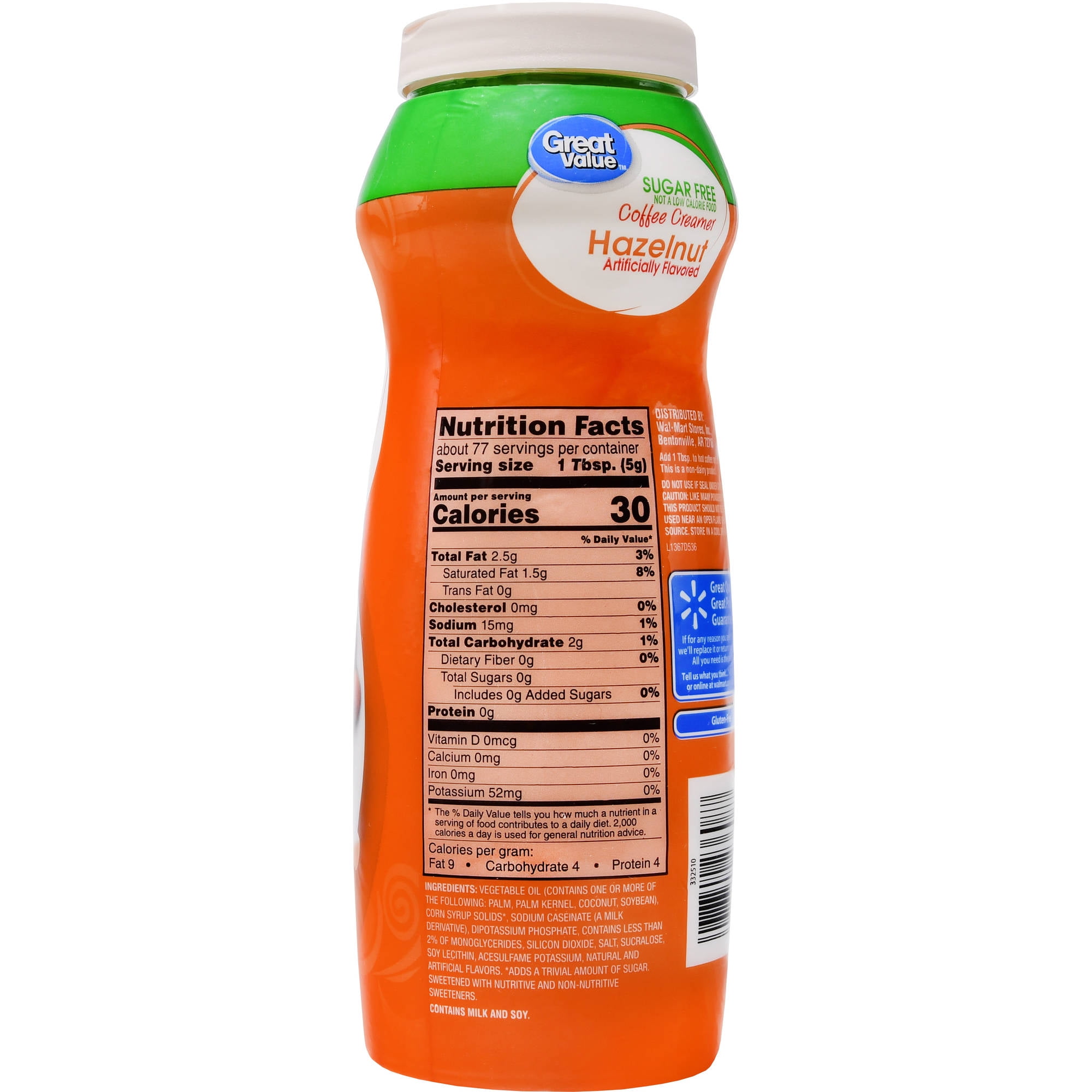 Nutrition facts for great value original coffee creamer. Coffee creamers make a great addition to any coffee to add additional flavor and creaminess to your drink. Great value hazelnut coffee creamer, 15 oz. Great value hazelnut coffee creamer, 1 tbsp. Here are tips for making the most of this app. Good value for the amount of product you. Nutritional information, diet info and calories in coffee creamer, irish cream from great value. Which one is more calorific. Great value french vanilla coffee creamer, 15 oz. * the % daily value (dv) tells you how much a nutrient in a serving of food contributes to a daily diet. If coffee creamer is in fact dehydrated milk (like powdered coffee) then it may be able to be used in some recipes but i would mix it up into water to make a milk like product first as adding it dry to say a cake mix will throw your liquid to a little known fact and most of them will do it with no extra charge. Dairy milks are a great choice. 2,000 calories a day is used for general nutrition advice.